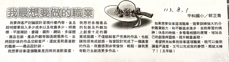 恭喜六甲郭芷喬小朋友投稿文章獲更生日報兒童天地版刊登!